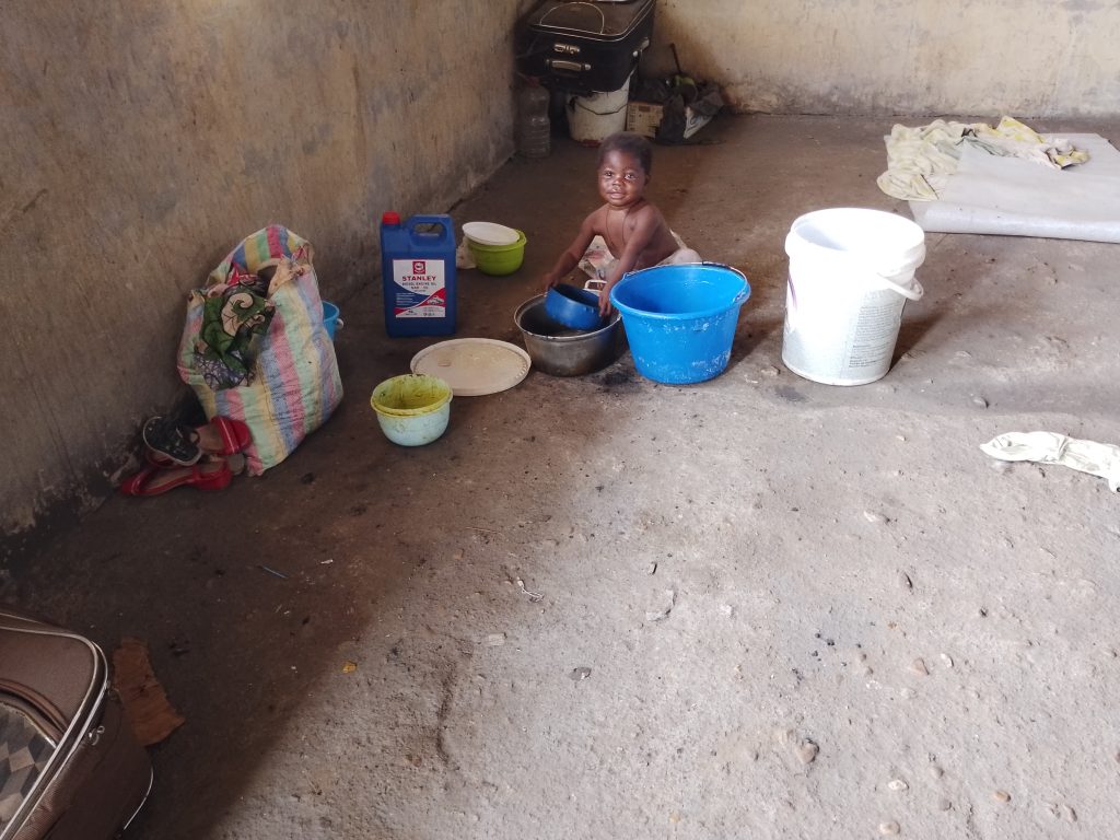 Nous avons aussi visiter un site qui herbege plus de 300 PDIs qui est une ecole delocalisee et qui manque les infrastructure Hygienique de base, les gens dorment soit a l’exterieur, soit sous le Cartons et sans rien.